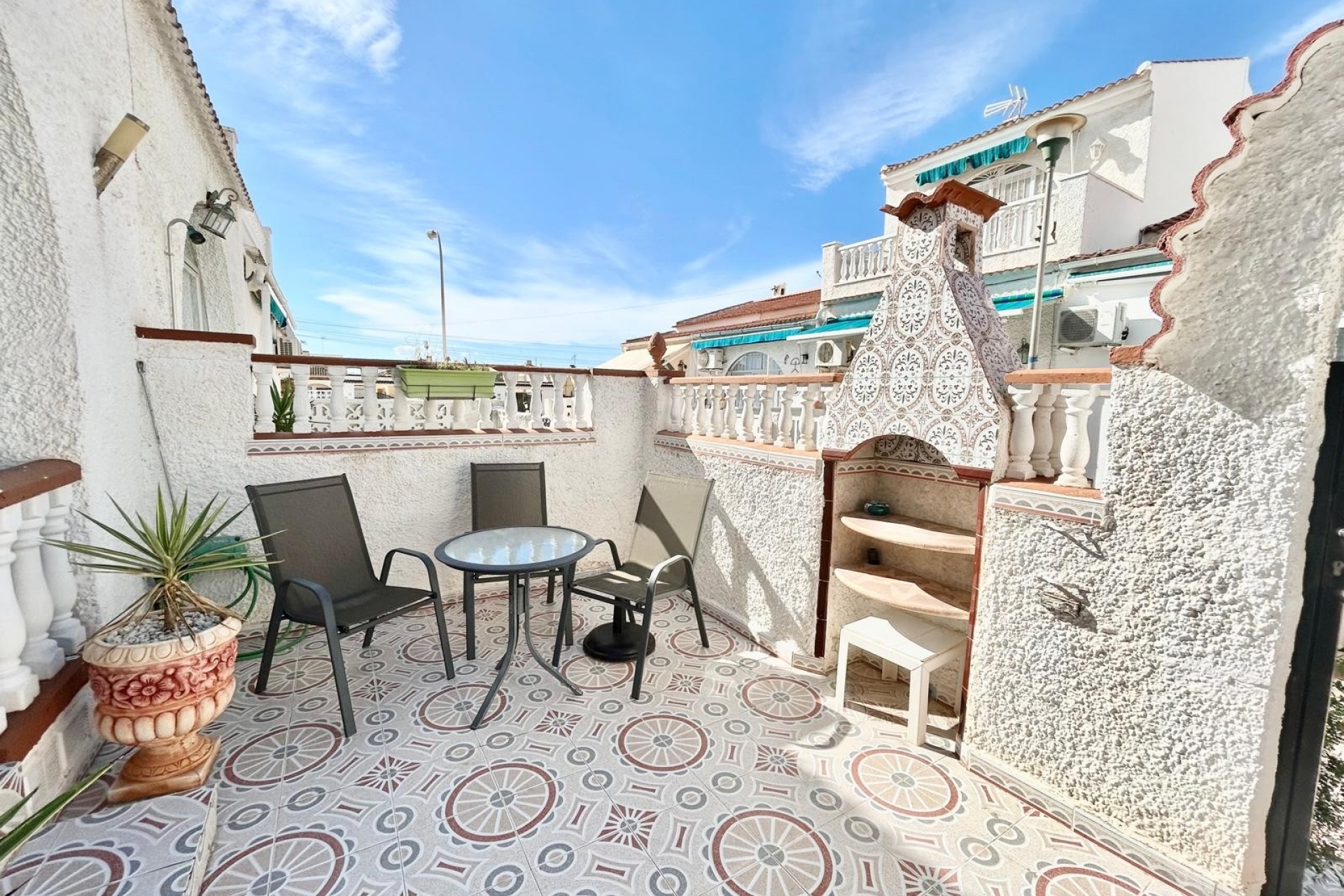 Cette magnifique et spacieuse maison de ville de 3 chambres est idéalement située dans une rue calme de La Siesta, à quelques minutes en voiture du centre animé de Torrevieja et des splendides plages de sable doré de la Costa Blanca, Costa Cálida et Mar Menor.
